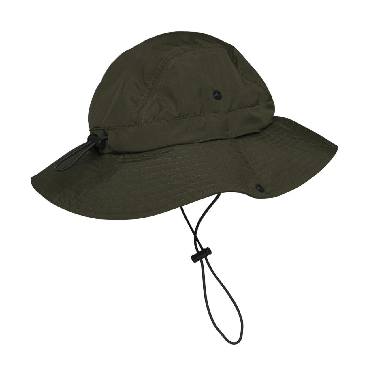 Dieser Hut in Grün lässt sich multifunktionell einsetzen: Im Dunkeln reflektiert das STIHL Logo vorne. Das Material ist faltbar, regenabweisend und mit Insektenschutz (Biozid) versehen. Für zusätzlichen Halt sorgen der verstellbare Kinnriemen sowie eine Weitenregulierung. Sonnenschutz UPF 50+.